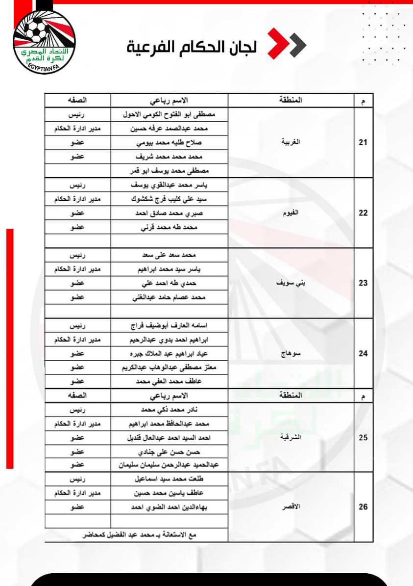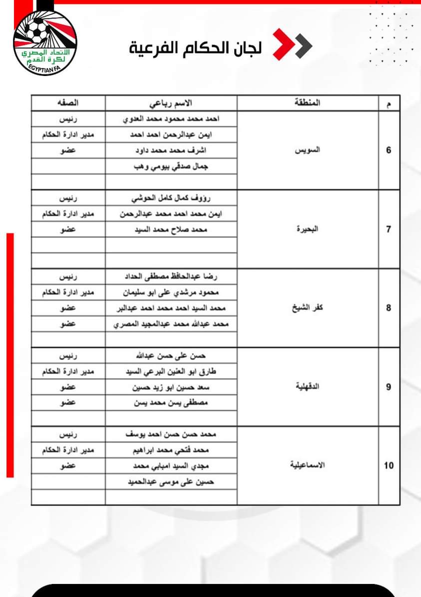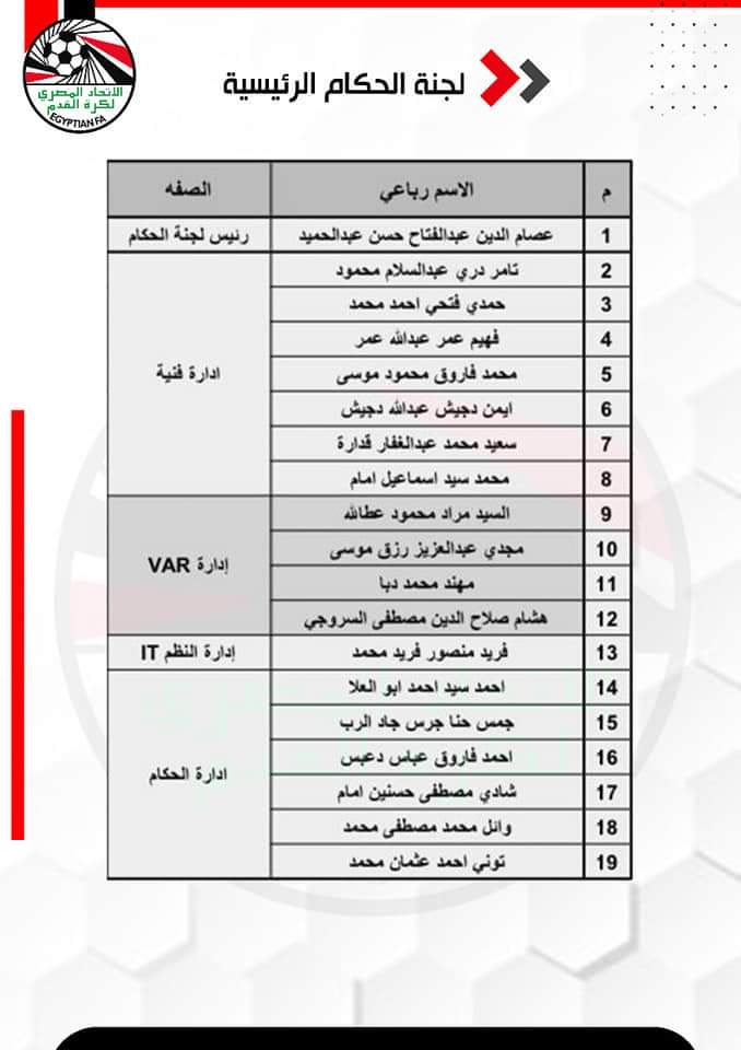 وافق الاتحاد المصري لكرة القدم برئاسة الاستاذ جمال علام علي إعتماد خطة تطوير لجنة الحكام وتشكيل لجانها الرئيسية والفرعية المقدمة من الكابتن / عصام عبد الفتاح رئيس لجنة الحكام .