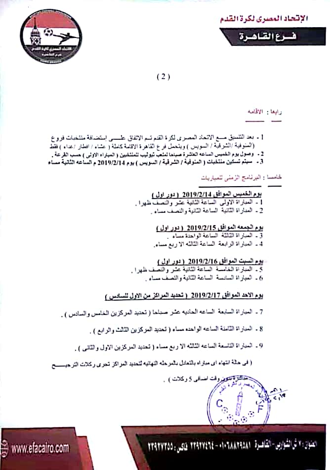 تعليمات الإتحاد لمنتخبات قطاع 2001